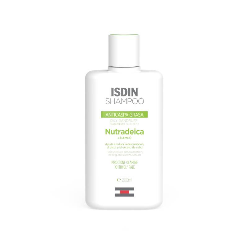 ISDIN Nutradeica Champô Caspa Oleosa 200ml ajuda a reduzir o excesso de sebo, alivia a comichão e reduz a caspa.