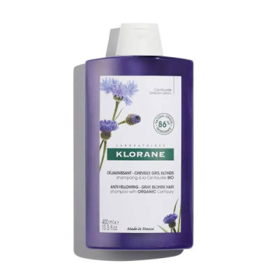 Klorane Champô com Centáurea BIO reaviva o brilho do cabelo grisalho, branco ou loiro platinado, neutralizando instantaneamente o amarelecimento.