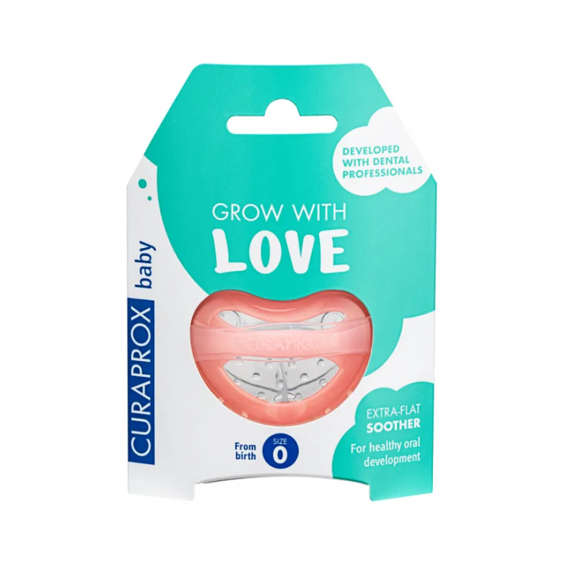 A chupeta Curaprox tamanho 0 foi concebida por dentistas para apoiar o desenvolvimento natural da boca. O seu formato biofuncional acompanha os movimentos naturais de sucção desde o nascimento.