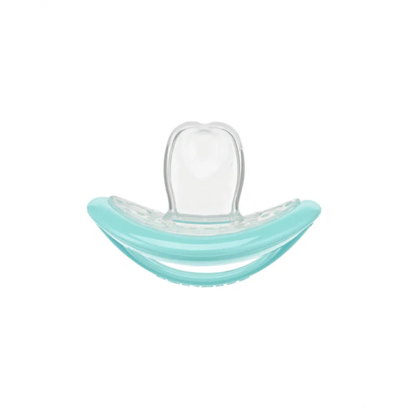Nuk MommyFeel Chupetas Silicone Azul 0-9M é uma embalagem composta por 2 chupetas amigas da amamentação.