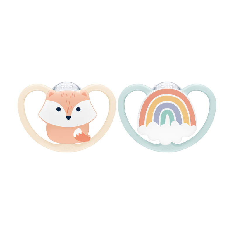 Desenvolvidas para respeitar o desenvolvimento oral do bebé, as chupetas Nuk Space têm um formato ortodôntico que ajuda a reduzir o risco de desalinhamento dos dentes e da mandíbula.