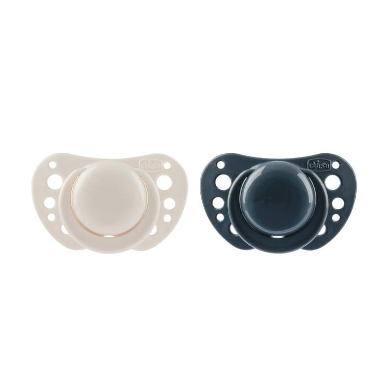 Chicco Physioforma Soft Chupetas Neutras 6-16M fabricadas em silicone macio, foram concebidas para não perturbar o bebé mesmo durante o sono e para não deixar marcas no rosto.