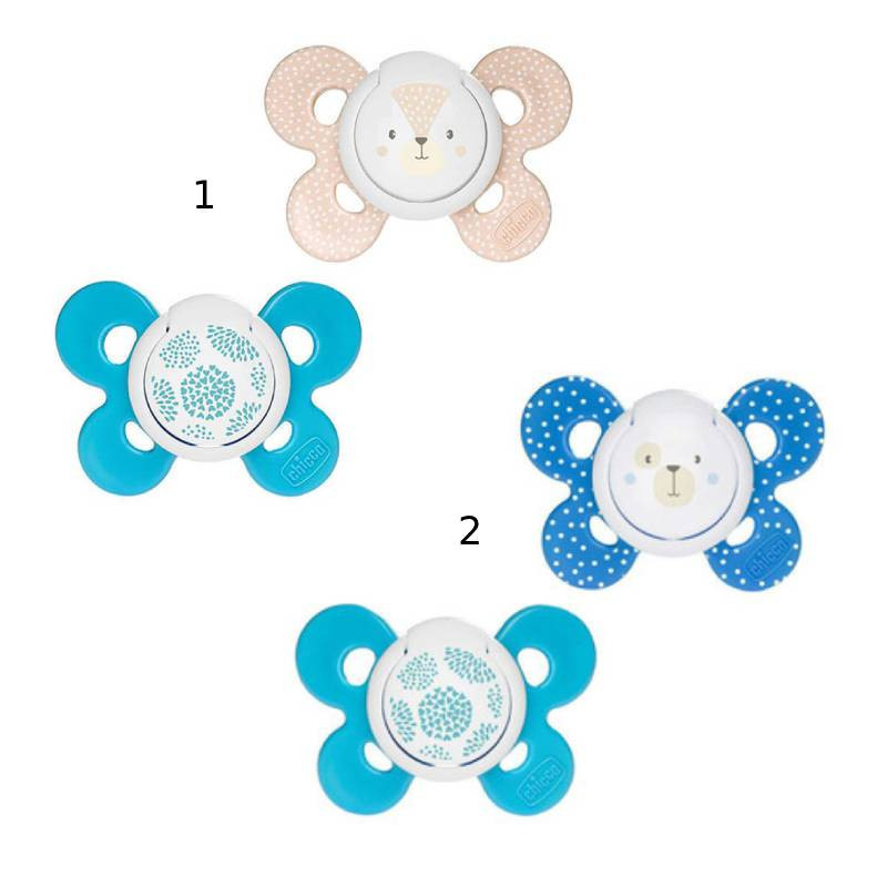 Chicco Physio Comfort Chupetas Silicone Boy 6-16M é uma embalagem composta por 2 chupetas. Chicco Physio Comfort Chupeta Silicone é uma chupeta em silicone higiénico 100% suave para bebés a partir do nascimento.