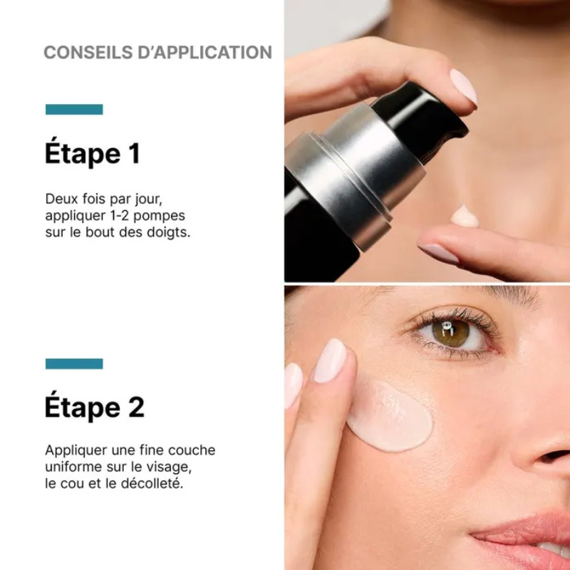 Aplicar no rosto e pescoço, com a pele limpa. Usar duas vezes ao dia – de manhã e à noite. De manhã, aplicar após o sérum antioxidante (ex: Vitamina C da SkinCeuticals) e antes do protetor solar.