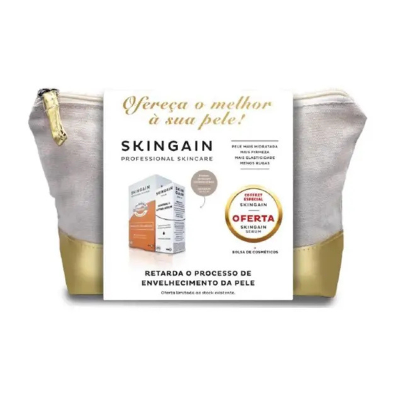 O Pack Skingain Comprimidos oferece uma solução inteligente e económica para quem procura resultados visíveis. Combina a nutrição diária de longa duração dos comprimidos com o efeito lifting e hidratante imediato do sérum, numa oferta especial que inclui ainda uma prática bolsa transparente. A sinergia perfeita para firmar, hidratar e revitalizar a pele de forma consistente e conveniente.
