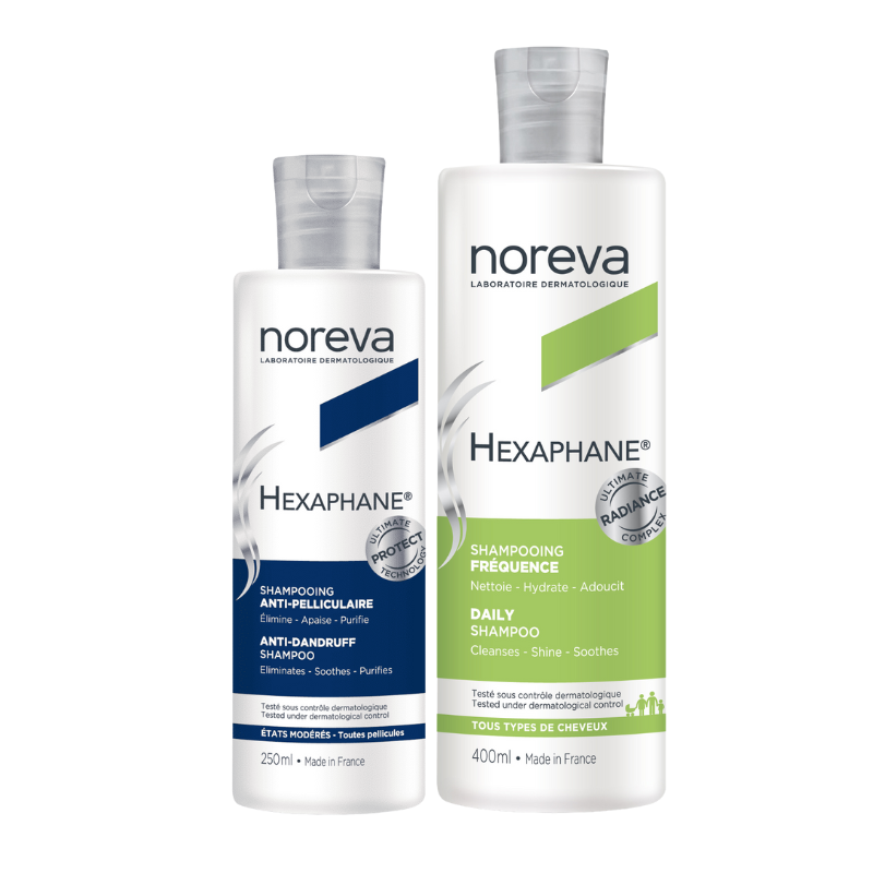 Inclui: Noreva Hexaphane Champô Anti-Caspa 250 ml e Noreva Hexaphane Champô Frequência 400 ml. *Imagem ilustrativa.