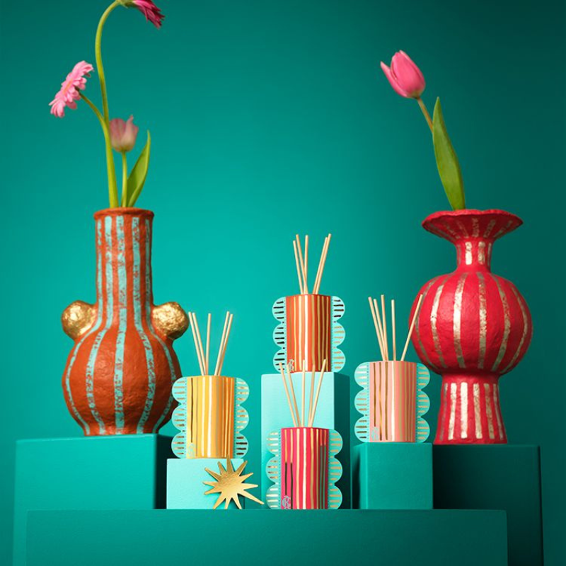 Coffret Natal 2025 Bois d'Orange Roger&Gallet: um presente mágico com Água Perfumada Bois d'Orange 100ml e um difusor 30ml em vaso de papel. Mergulha num universo de aromas vibrantes criado pela artista Eclette.