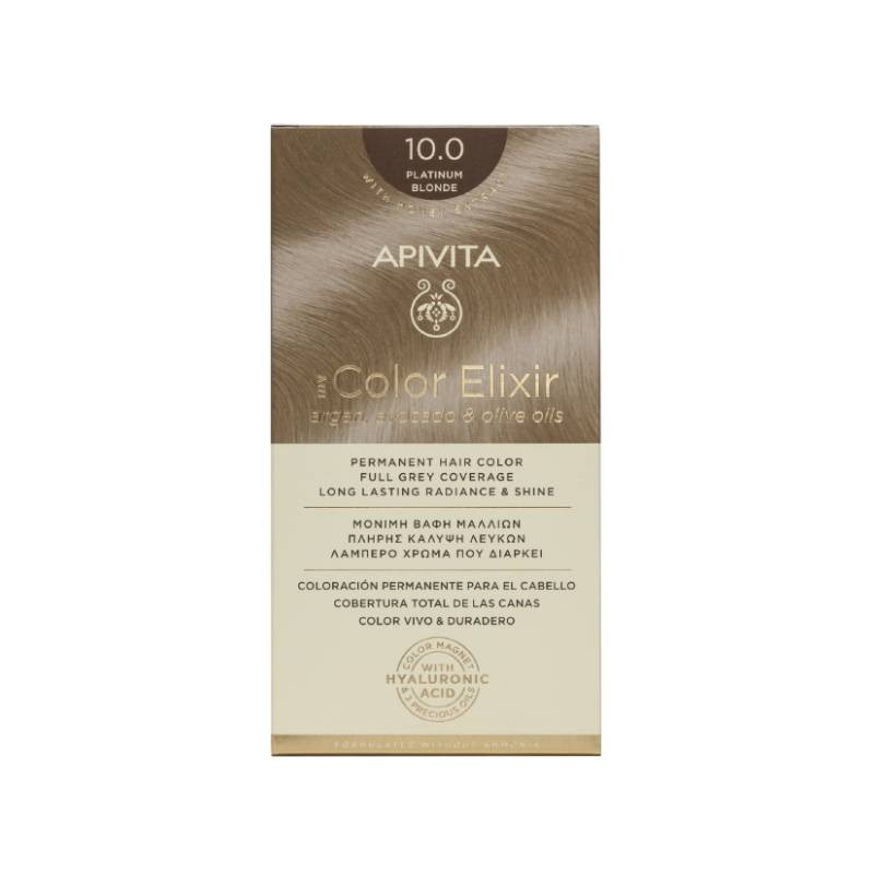 Apivita My Color Elixir é um cuidado coloração que proporciona ao cabelo uma cor vibrante e duradoura. Enriquecido o ativo inovador Color Magnet (estabilizador e fixador de cor), 3 óleos preciosos (argão, abacate e azeitona), para uma cobertura total, com uma cor vibrante e duradoura. Com condicionador, rico em ácido hialurónico e extrato de mel, para uma ação hidratante, protetora e iluminadora. Sem amoníaco nem PPD.