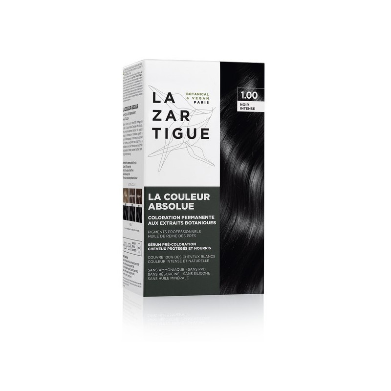 Lazartigue Coloração Permanente é um cuidado de cor capilar, indicado para todos os tipos de cabelo. Formulado com 73 a 85% de ingredientes de origem natural, com extratos botânicos; leite de arroz; e óleo rainha-dos-prados. Protege e nutre a fibra capilar, dá brilho e deixa o cabelo com um tom natural e profissional. Lazartigue Coloração Permanente é composto por: sérum profissional pré-coloração (15 ml); frasco com leite de cuidado profissional (70 ml); creme de coloração profissional (48 ml); máscara nutritiva profissional (20 ml); e um par de luvas. Fórmula vegan. Sem amoníaco. Sem PPD. Sem resorcinol. Sem silicone. Sem óleos minerais.