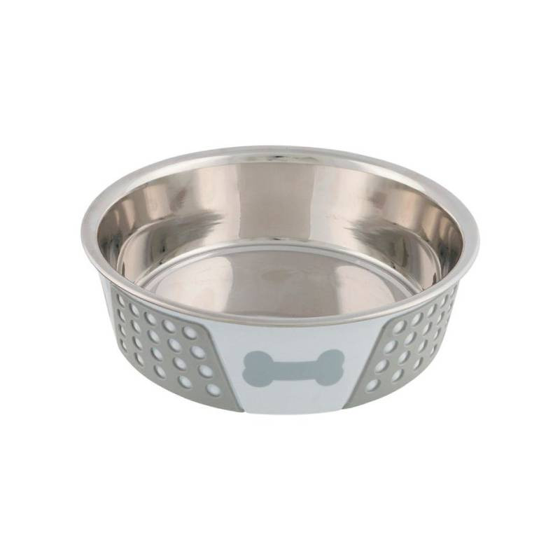 Trixie Tigela Inox Com Silicone 1,4Lt 21cm Branco/Cinza fabricado com silicone e material anti-derrapante, é indicado para colocar a comida ou bebida do teu animal de quatro patas.