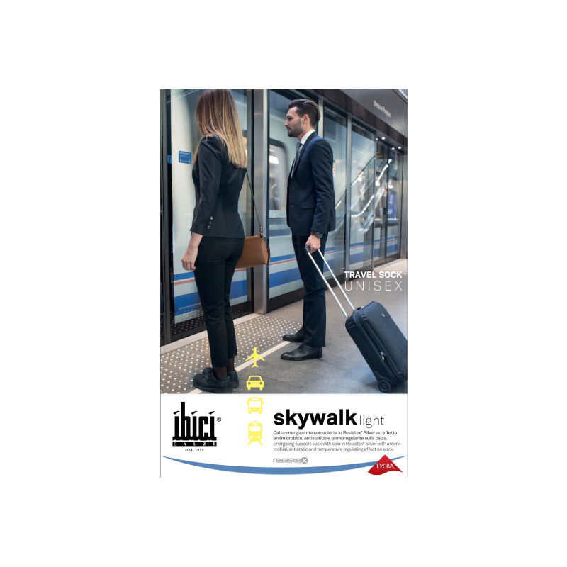 Íbící Skywalk Light Meia Homem Preto XL é uma meia de compressão até ao joelho, com efeito bacteriostático e antimicrobiano – 70 (11/14 mmHg).