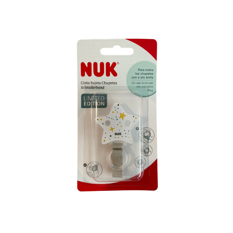 Nuk Classic Fita Chupeta apresenta um prático clip para prender a chupeta de forma segura e impedir que caia ao chão, que se suje ou que se perca.