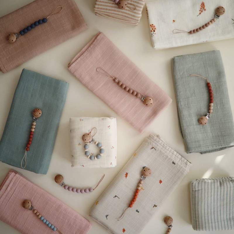 Mushie Corrente de Chupeta Halo é uma corrente feita de silicone macio e madeira natural, indicada para prender a chupeta, mantendo-a sempre limpa e perto do bebé.