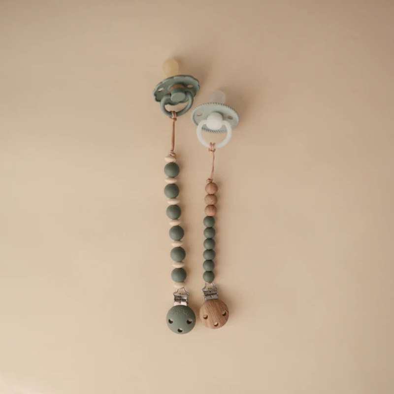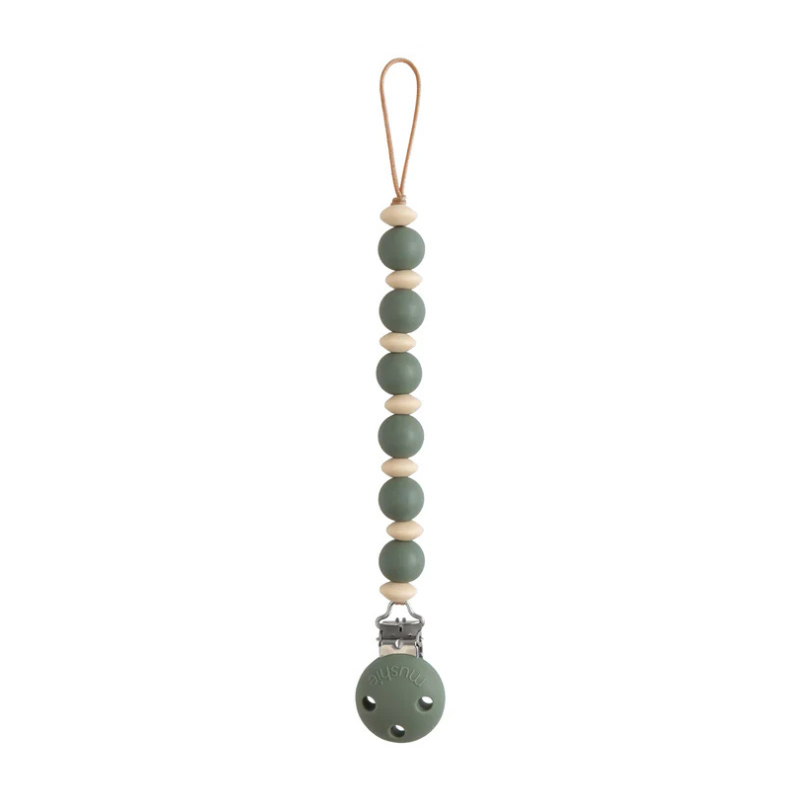 Mushie Halo Corrente Chupeta Sage +0M é um acessório de silicone, indicado para prender a chupeta do bebé.