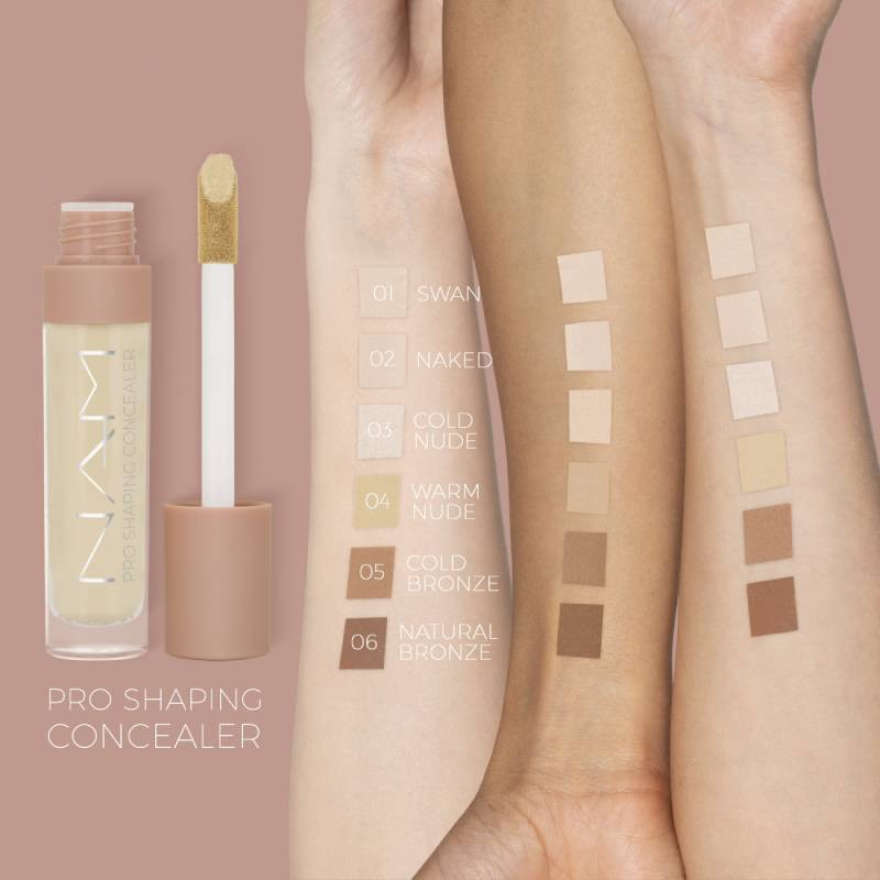 NAM Cosmetics Pro Shaping Concealer 01 é um corretor facial nutritivo com aplicador e fórmula fácil de misturar.