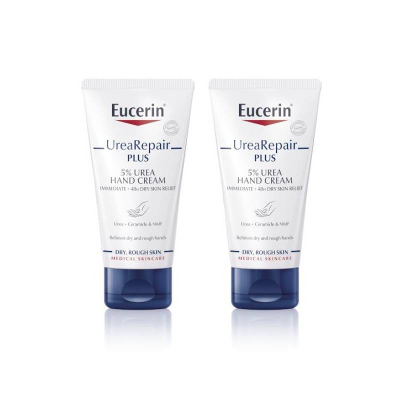 Eucerin UreaRepair Plus Creme Mãos -70% 2ªunidade é um pack promocional composto por 2 embalagens de 75ml. Eucerin UreaRepair Plus Creme Mãos alivia durante 48 horas as mãos secas, muito secas ou ásperas.