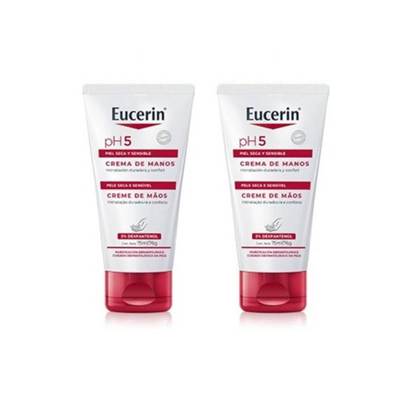 Eucerin pH5 Creme Mãos -70% 2ªunidade é um pack promocional composto por 2 embalagens de 75ml. Eucerin pH5 Creme Mãos suave mas eficaz, que restabelece as defesas naturais da pele, proporcionando hidratação e proteção duradouras.