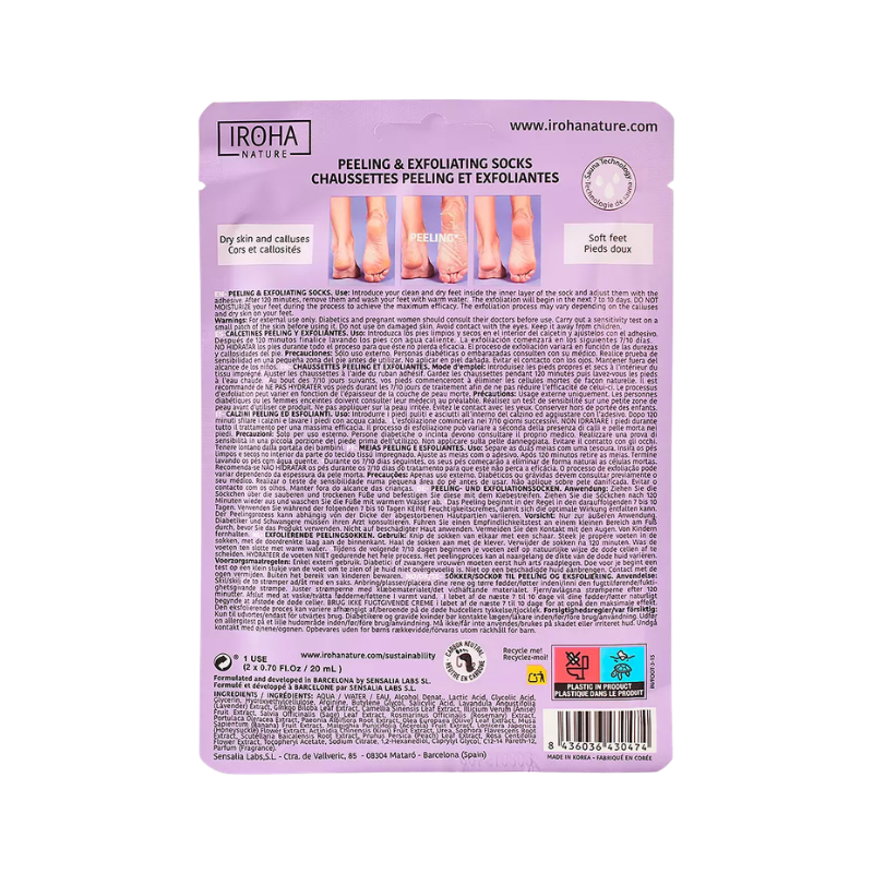 As Meias Esfoliantes Lavander são um tratamento de choque para pés ressecados, ásperos e com durezas. Inspiradas nos rituais de cuidado coreanos, estas meias de uso único utilizam uma poderosa combinação de ingredientes naturais para acelerar o processo natural de renovação celular, revelando uma pele nova, macia e saudável.