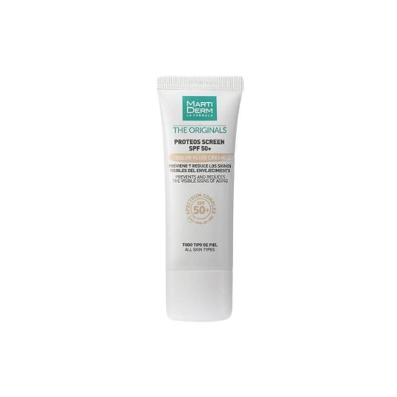 Martiderm Proteos Screen SPF50+ Color Fluid Cream 40ml é um creme hidratante com cor e proteção solar, adequado a todos os tipos de pele.