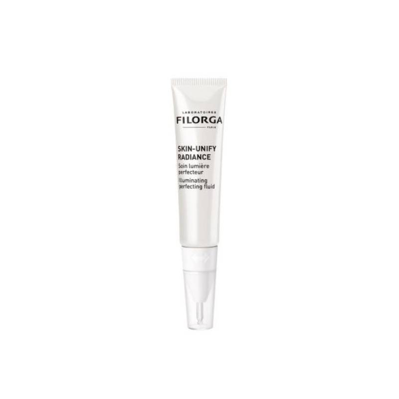 Filorga Skin-Unify Radiance é um fluido que ilumina naturalmente a tez, enquanto reduz as manchas escuras da pele.