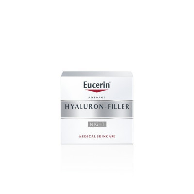 Eucerin Hyaluron-Filler + Elasticity Noite 50ml formulado com Óleo de Argão, rico em lípidos, que ajuda a regenerar e nutrir intensamente a pele durante a noite.