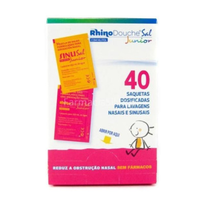 Rhinodouche Junior+ Irrigação Nasal Garrafa + Saquetas é composto por: Rhinodouche Junior+ Irrigação Nasal Garrafa (1 garrafa) e Rhinodouche Junior+ Saquetas (40 saquetas).