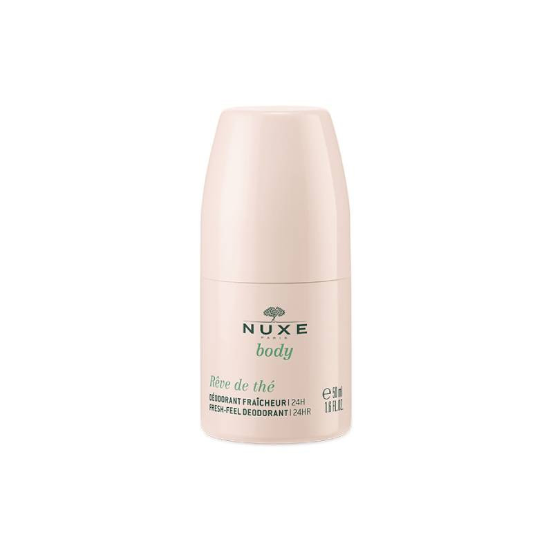 Nuxe Rêve de Thé Desodorizante 24h é um cuidado complementar com uma tecnologia inteligente que se adapta às necessidades da pele, para proteção de longa duração durante 24 horas, proporcionando uma sensação refrescante.