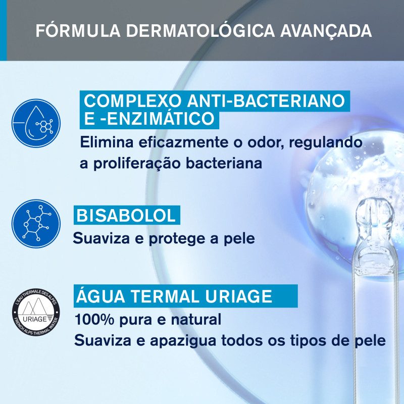 Composição: AQUA/EAU URIAGE — BUTYLENE GLYCOL — GLYCERIN — NEOPENTYL GLYCOL DIHEPTANOATE — STEARETH-2 — C12-13 ALKYL LACTATE — PARFUM (FRAGRANCE) — TAPIOCA STARCH — 1,2-HEXANEDIOL — PROPANEDIOL — TRIETHYL CITRATE — STEARETH-21 — CAPRYLYL GLYCOL — ETHYLHEXYLGLYCERIN — PIROCTONE OLAMINE — POLYACRYLATE-13 — POLYISOBUTENE — BISABOLOL — TOCOPHERYL ACETATE — XANTHAN GUM — CITRIC ACID — POLYMETHYLSILSESQUIOXANE — RHAMNOSE — POLYSORBATE 20 — SORBITAN ISOSTEARATE — GLUCOSE — GLUCURONIC ACID