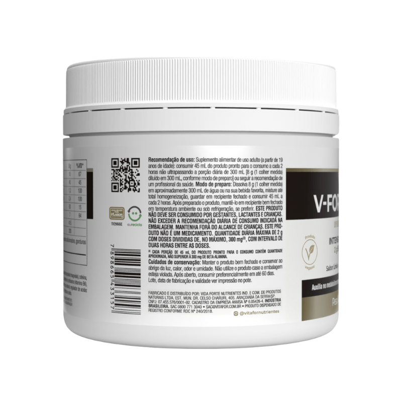 Vitafor V-Fort é um pré-treino com uma fórmula avançada e ingredientes específicos para potencializar o desempenho durante o exercício.