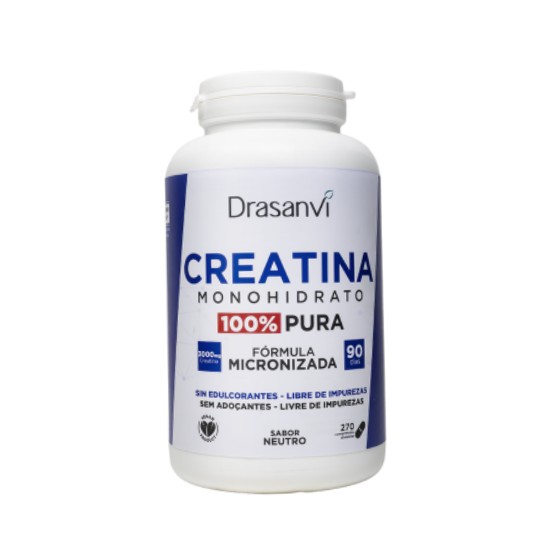 Drasanvi Creatina 200 MESH sabor neutro: suplemento em pó com monohidrato de creatina de alta qualidade. Melhora o rendimento em exercícios de alta intensidade. Fácil de tomar (3g/dia). Sabor refrescante.