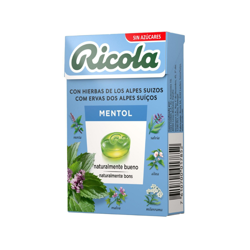 Ricola Rebuçados Mentol sem Açúcar: A explosão de frescura intensa que alivia e desobstrui as vias respiratórias.