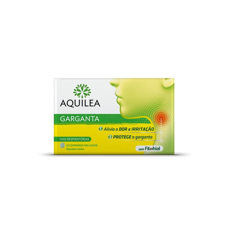 AQUILEA GARGANTA alívia a dor e a irritação e protege a garganta. É um dispositivo médico indicado para o tratamento das afeções orofaríngeas como a dor de garganta e a faringite. Contém Fitohial (complexo molecular à base de Ácido hialurónico, Salva e Grindélia). O ácido hialurónico, graças às suas propriedades filmogénicas, forma uma barreira que acalma a dor e protege a garganta e a mucosa orofaríngea e laríngea dos agentes externos. A Salva, a Grindélia e o Própolis têm funções aromatizantes e balsâmicas. Contém também óleos essenciais de cravinho e laranja.