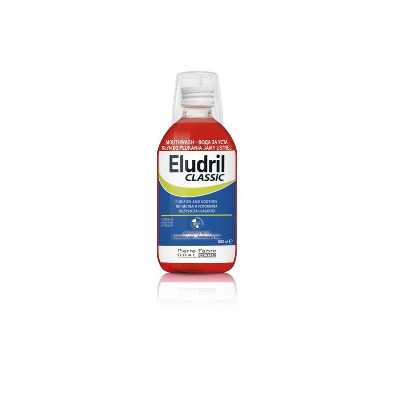 Uma fórmula completa e exclusiva de eficácia comprovada clinicamente que associa dois ingredientes activos com propriedades purificantes. EludrilCLASSIC reduz o desenvolvimento da placa bacteriana e do tártaro, previne o aparecimento ou agravamento dos problemas gengivais. Contém álcool, devendo ser utilizado diluído com água morna.Indicado a partir dos 6 anos.