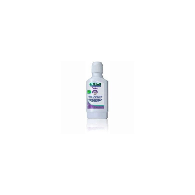 Colutório especializado da gama de ortodontia GUM, desenvolvido para responder aos desafios únicos de higiene oral durante o uso de aparelho fixo. A sua fórmula avançada proporciona uma proteção multifacetada: ajuda a prevenir cáries, reduz a acumulação de placa bacteriana em redor dos brackets e fios, e fortalece o esmalte dentário para combater lesões de manchas brancas. Enriquecido com ingredientes naturais calmantes como Aloé Vera e Extrato de Gengibre, acalma as gengivas frequentemente irritadas pelo atrito do aparelho. A Vitamina E (antioxidante) contribui adicionalmente para a saúde gengival.