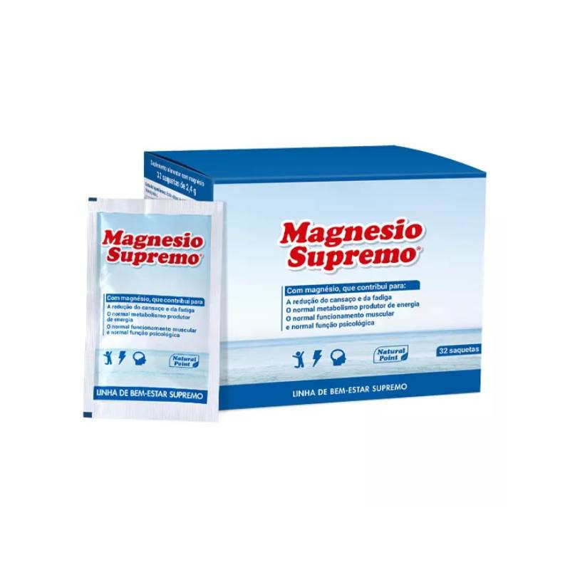 Magnesio Supremo Pó Saquetas x32 contribui para a redução do cansaço e fadiga e para o normal funcionamento muscular.