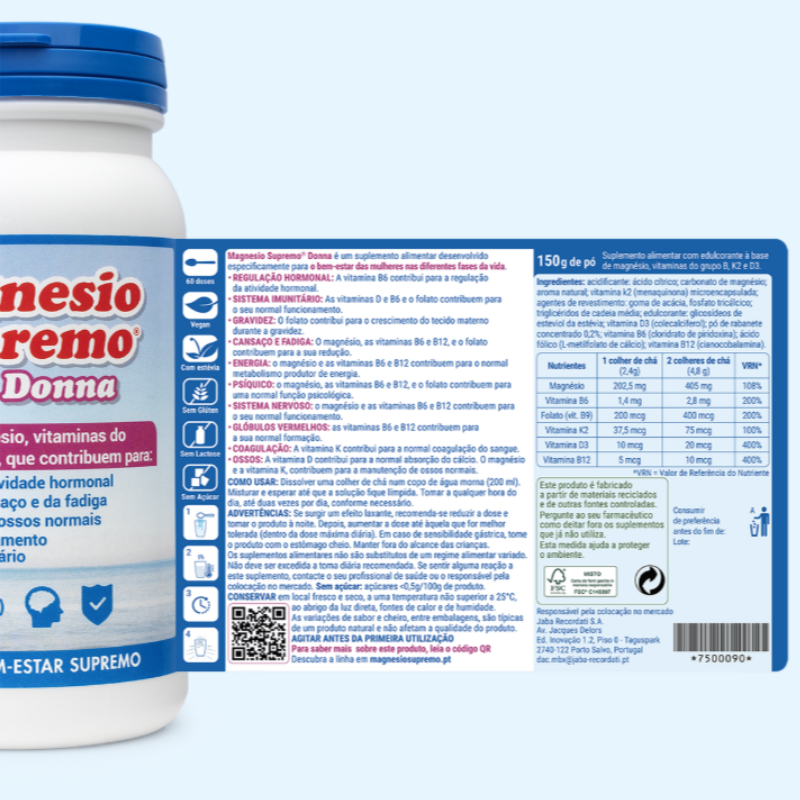 O Magnesio Supremo Donna é um suplemento alimentar multivitamínico à base de magnésio que fornece citrato de magnésio em forma orgânica altamente solúvel, com alta velocidade de absorção.¹