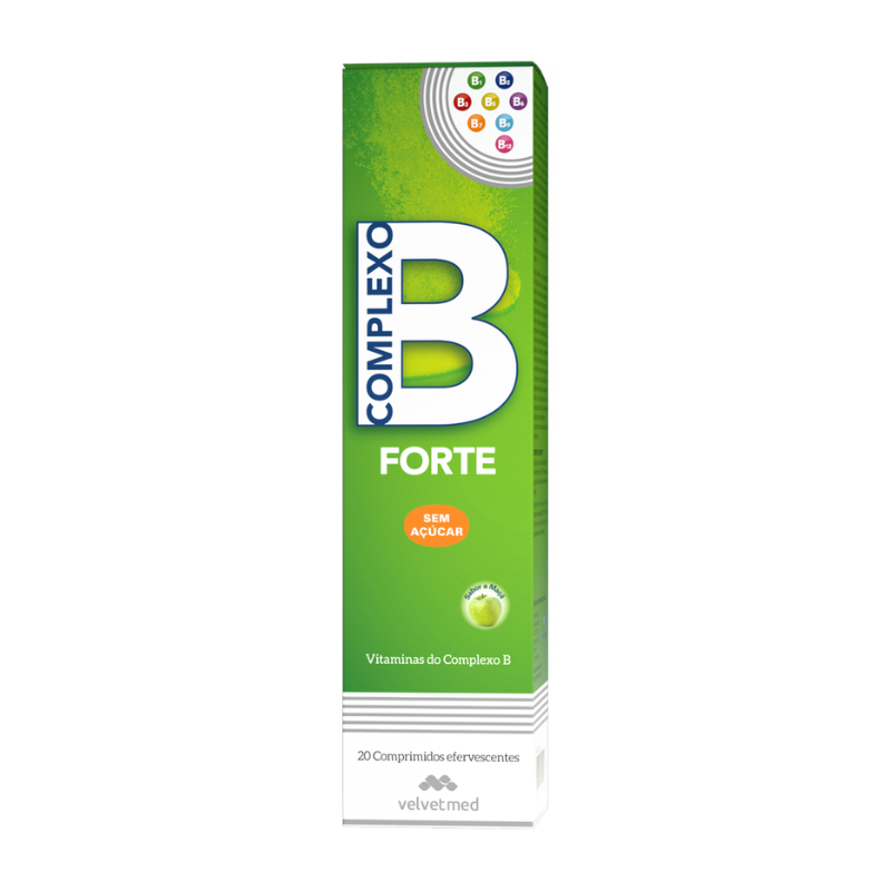 Complexo B Forte Comprimidos Efervescentes é um suplemento energético sem açúcar, com sabor a maçã verde, formulado com um complexo completo de 8 Vitaminas B. Ajuda a reduzir o cansaço e a fadiga, apoia o metabolismo energético, o sistema nervoso, a função psicológica e o sistema imunitário.
