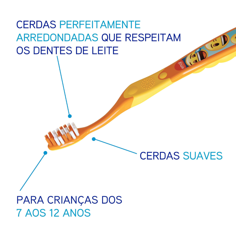 - Com cerdas arredondadas que se adaptam aos primeiros dentes permanentes, oferece uma limpeza eficaz;