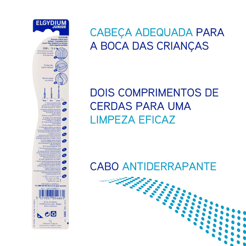O Kit ELGYDIUM Junior inclui uma pasta dentífrica (50ml) com sabor a pastilha elástica para crianças dos 7 aos 12 anos e uma escova de dentes. Com 96% de ingredientes naturais, protege e fortalece o esmalte dos primeiros dentes definitivos com Fluorinol® Protect+™.