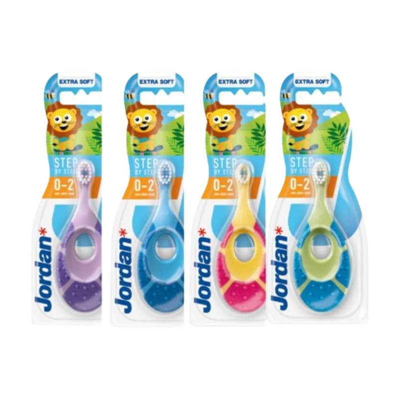 Jordan StepByStep Escova de Dentes Criança 0-2Anos fabricada com cerdas extra suaves para os primeiros dentes e gengivas do bebé.