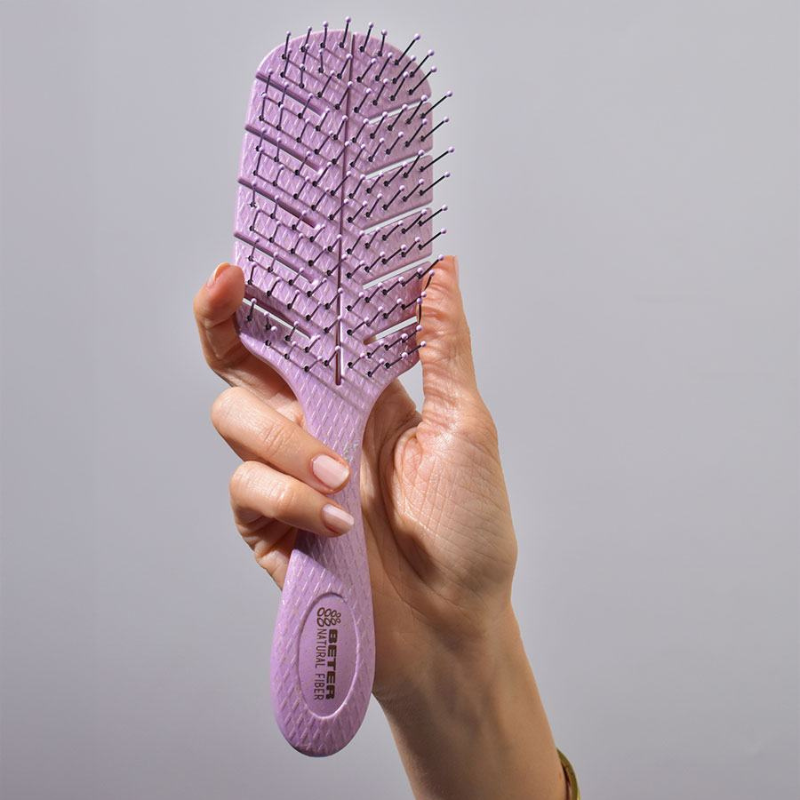 A Escova Desembaraçante Natural Fiber Beter foi produzida com materiais naturais renováveis procedentes de fibras de trigo, casca de arroz e polímero de resina. Com cerdas desembaraçadora 200mm de comprimento: flexíveis e resistentes, permitem desembaraçar com a máxima suavidade enquanto massageiam o couro cabeludo estimulando a circulação sanguínea.