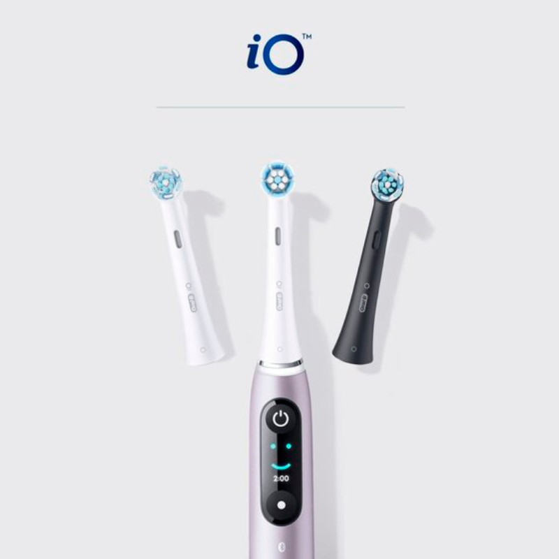 A escova elétrica Oral-B iO2 combina microvibrações suaves e cabeça redonda para uma limpeza profissional.