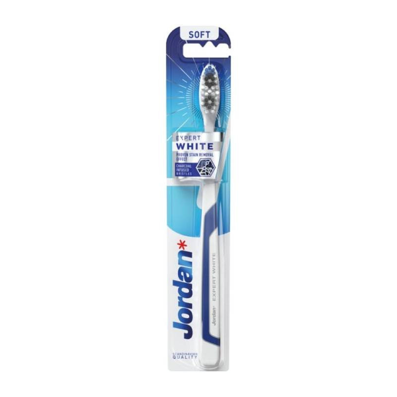 Jordan Expert White Soft Escova de Dentes de alta qualidade com comprovado efeito de remoção de manchas e cerdas com infusão de carvão.