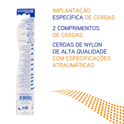 A escova Elgydium Clinic Pós-Operatória 7/100 tem cerdas ultrafinas (0,065 mm) e arredondadas, ideais para uso após cirurgias.