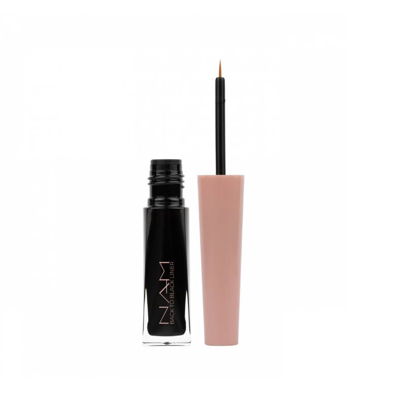 NAM Cosmetics Black to Black Liner é um eyeliner com um aplicador ultra fino que desliza sem esforço para uma aplicação mais fácil e precisa.