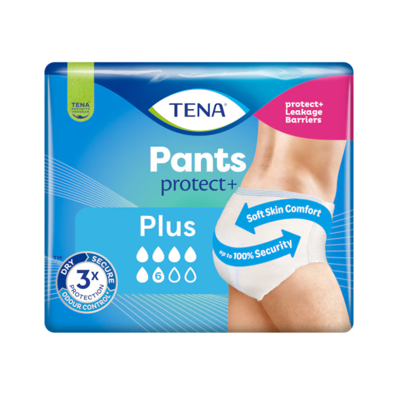 TENA Pants Protect+ Super é uma cueca descartável de alta absorção para incontinência, ideal para perdas moderadas a intensas. Conforto, proteção e liberdade de movimentos para homens e mulheres.