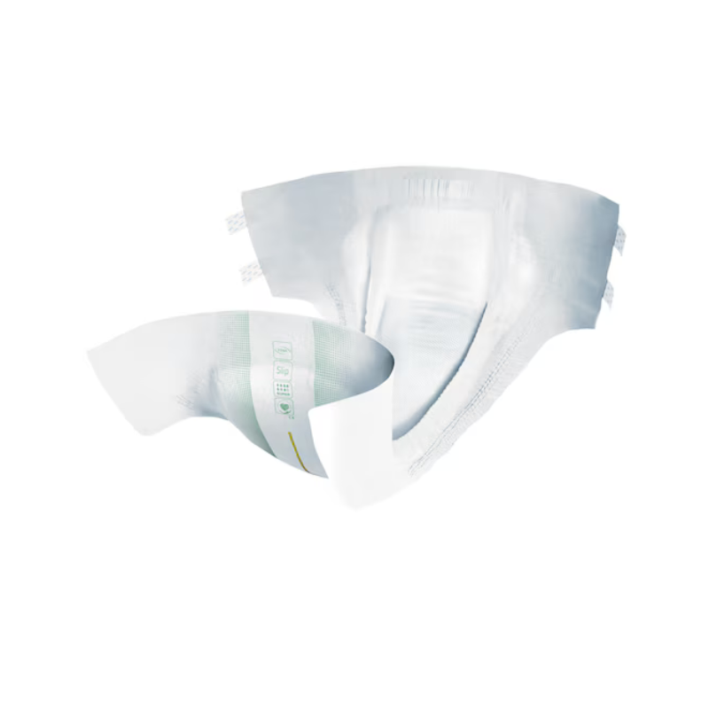 TENA ProSkin Slip Super M é uma fralda descartável desenvolvida para incontinência moderada a severa, oferecendo máxima absorção, conforto e segurança. Ideal para pessoas com mobilidade reduzida ou acamadas, o seu design aberto com fitas adesivas ajustáveis facilita a troca, mesmo em posições sentadas ou deitadas.
