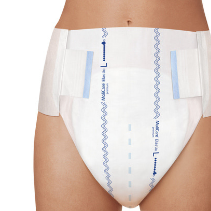 As fraldas com abas laterais elásticas Molicare Premium Elastic S oferecem a solução ideal para a gestão da incontinência urinária e fecal. Ideais para pessoas ativas e pacientes acamados, com incontinência muito grave.
