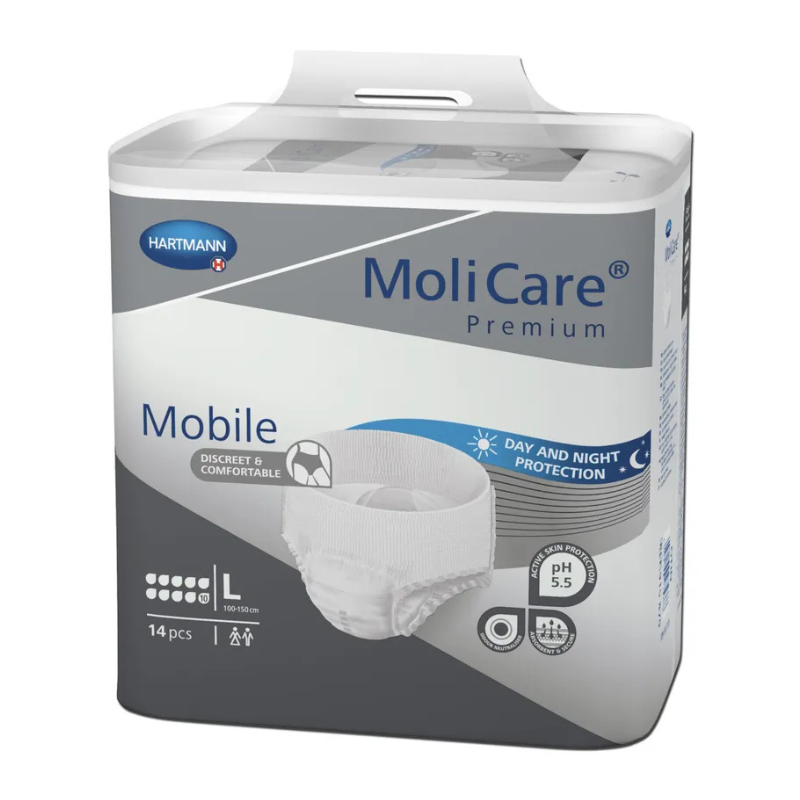 As cuecas MoliCare® Premium Mobile 10 Gotas oferecem a combinação perfeita de alta capacidade de absorção e ajuste discreto e confortável, proporcionando proteção superior para quem sofre de incontinência grave.