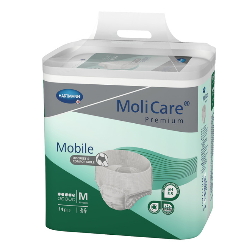 As cuecas Molicare Premium Mobile M 5 Gotas com alta absorção combinadas com um ajuste discreto e confortável, são adequadas para um dia ativo e para dormir descansado durante a noite.